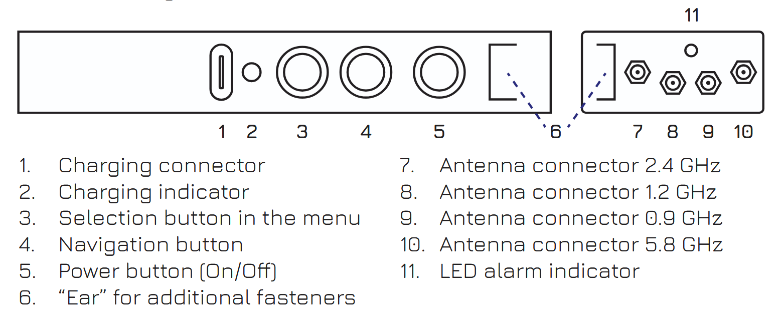 • 4 antennas (for 0.9, 1.2,2.4, and 5.8 GHz frequencies)