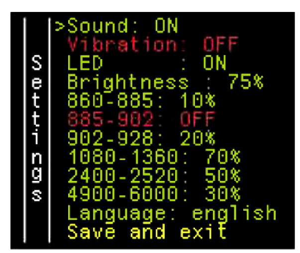 • Alarm sensitivity: Adjust threshold for each frequency band (ignore weak/noisy signals)